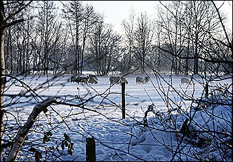 Ik had gehoopt dat we nog wat hertjes tegen zouden komen maar helaas ik heb ze niet gezien. Ze zijn er wel want we zien ze wel eens maar dan altijd zonder camera. Het was nu midden op de middag dan slapen ze vast, zal het niet? Tijdens onze wandeling zijn we helemaal niemand tegengekomen alleen een paar schapen wat een prachtig gezicht is zo in de sneeuw.